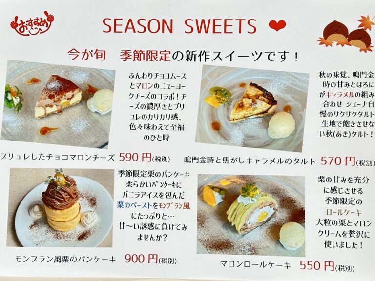 宴会パーティー 新作ドルチェ&Pasta 2024年10月13日2025年2月27日 こんにちは、SCENA(シェーナ)です。 【新作ドルチェ&パスタ登場!】●ブリュレしたチョコマロンチーズ ●鳴門金時と焦がしキャラメルのタルト ●モンブラン風栗のパンケーキ ●マロンロールケーキ秋の味覚をお楽しみ…
